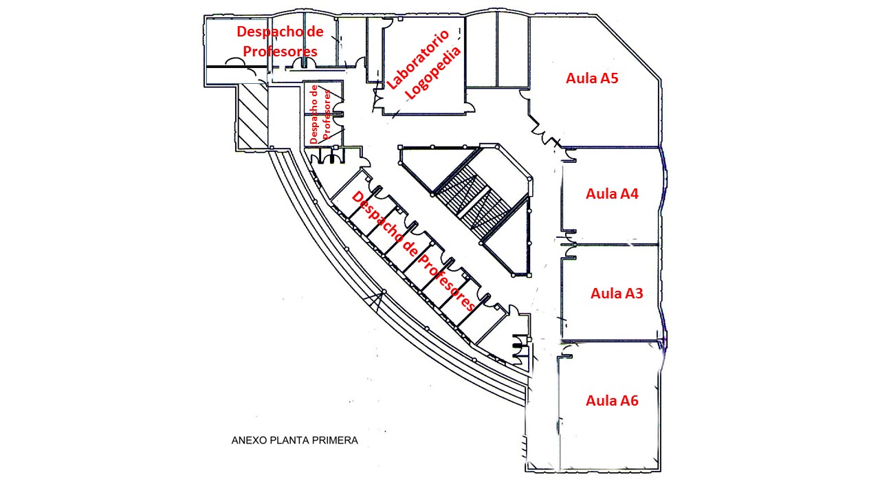 - Planta primera del E. Anexo: Aulas A3 a A6.