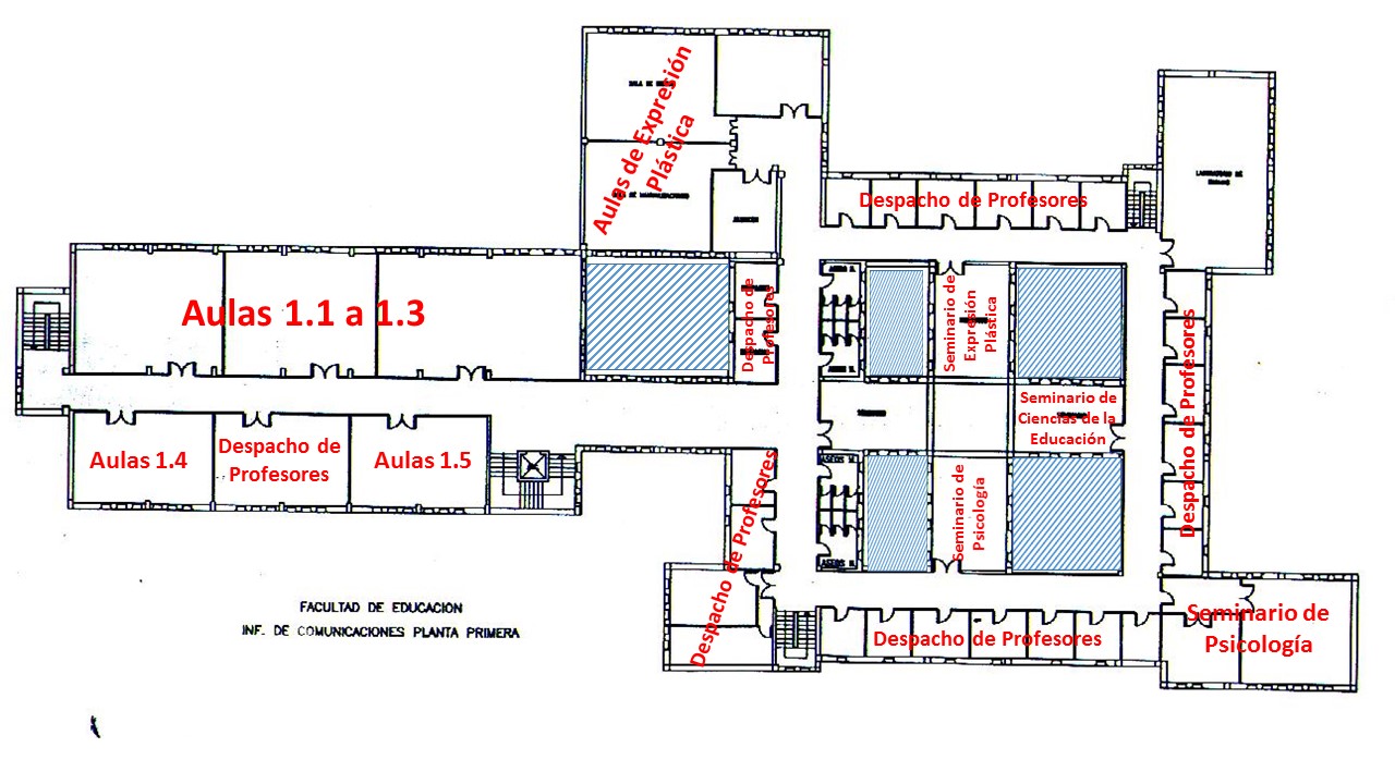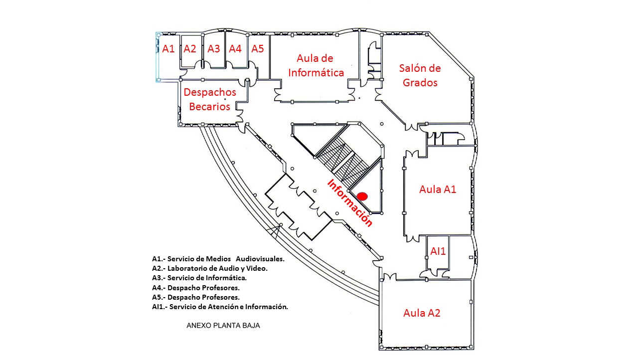- Planta baja del E. Anexo: Aulas A1 y A2, Aula de Informática y Aula del Futuro (Radio Educativa),